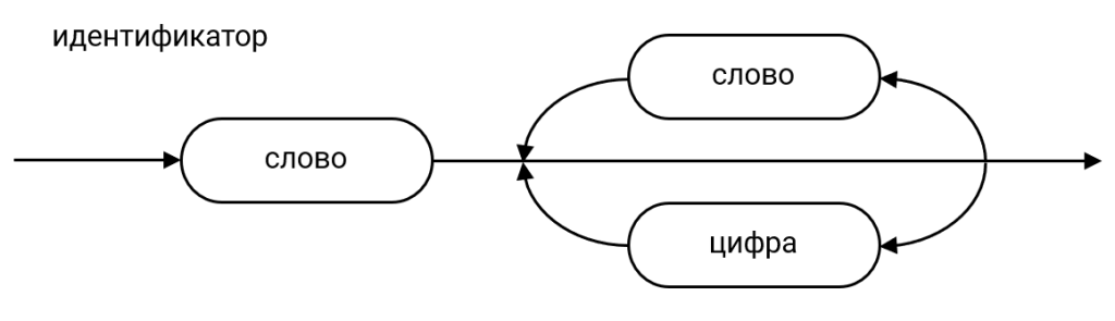 Синтаксни дијаграми визуелно представљају металингвистичке формуле. На пример, металинвистичку формулу која дефинише идентификатор можеш представити синтаксним дијаграмом на следећи начин:
